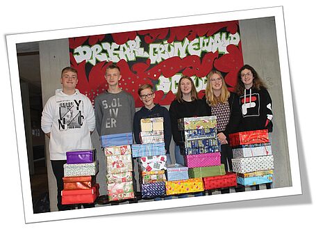 Seit vielen Jahren packen die Klassen der Realschule in der Vorweihnachtszeit Päckchen für arme Kinder in Osteuropa, um ihnen eine Weihnachtsfreude zu bereiten. Die Päckchen werden von Humedica in die entsprechenden Gebiete transportiert und sollen dort ein bisschen Weihnachtsfreude verbreiten.
